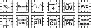 Om het verwijderen van de folie te vergemakkelijken, is er een snijdlijn voorzien op ongeveer 10 millimeter afstand op het schutblad, vanaf 18 tot en met 100 centimeter.